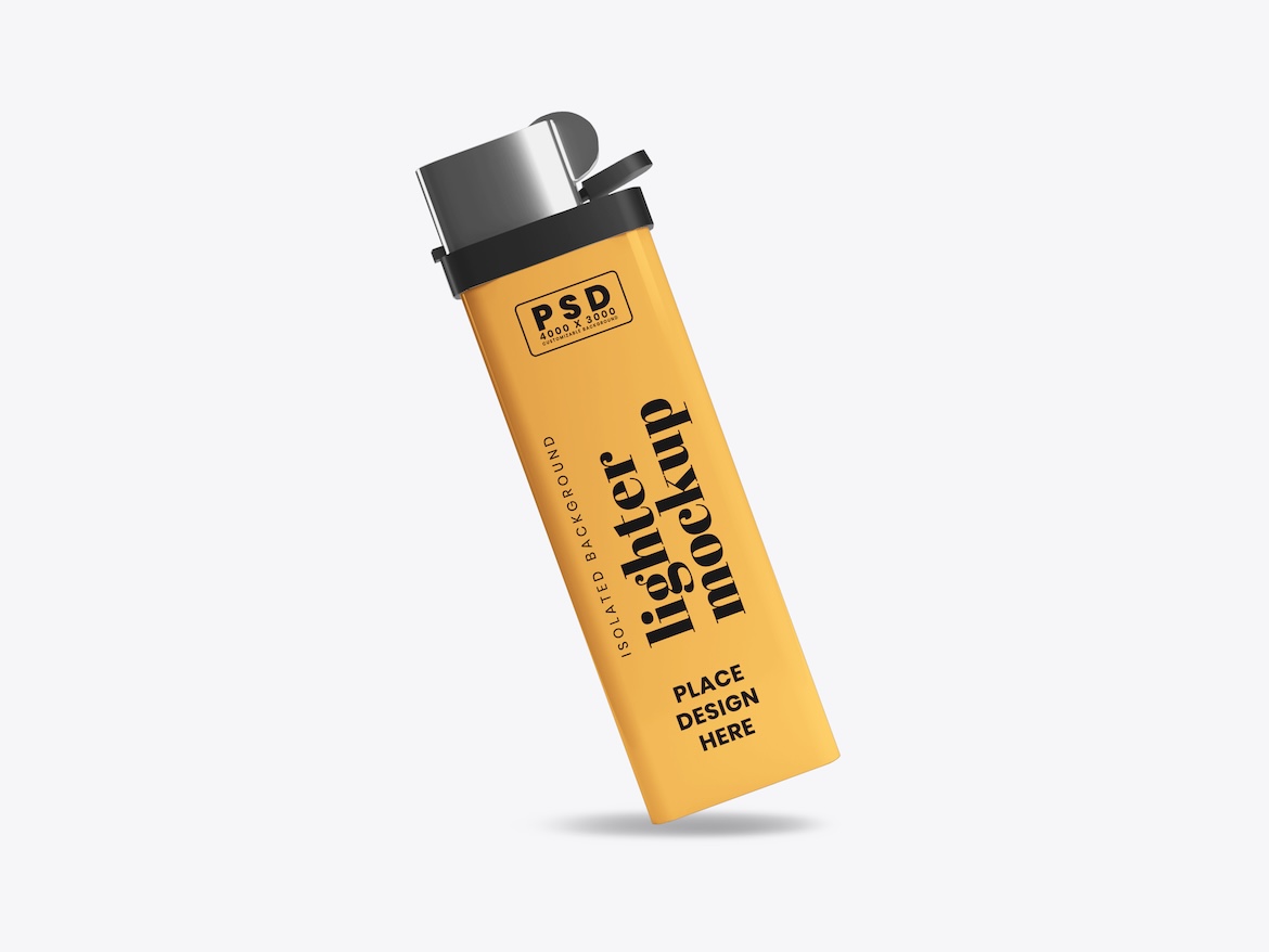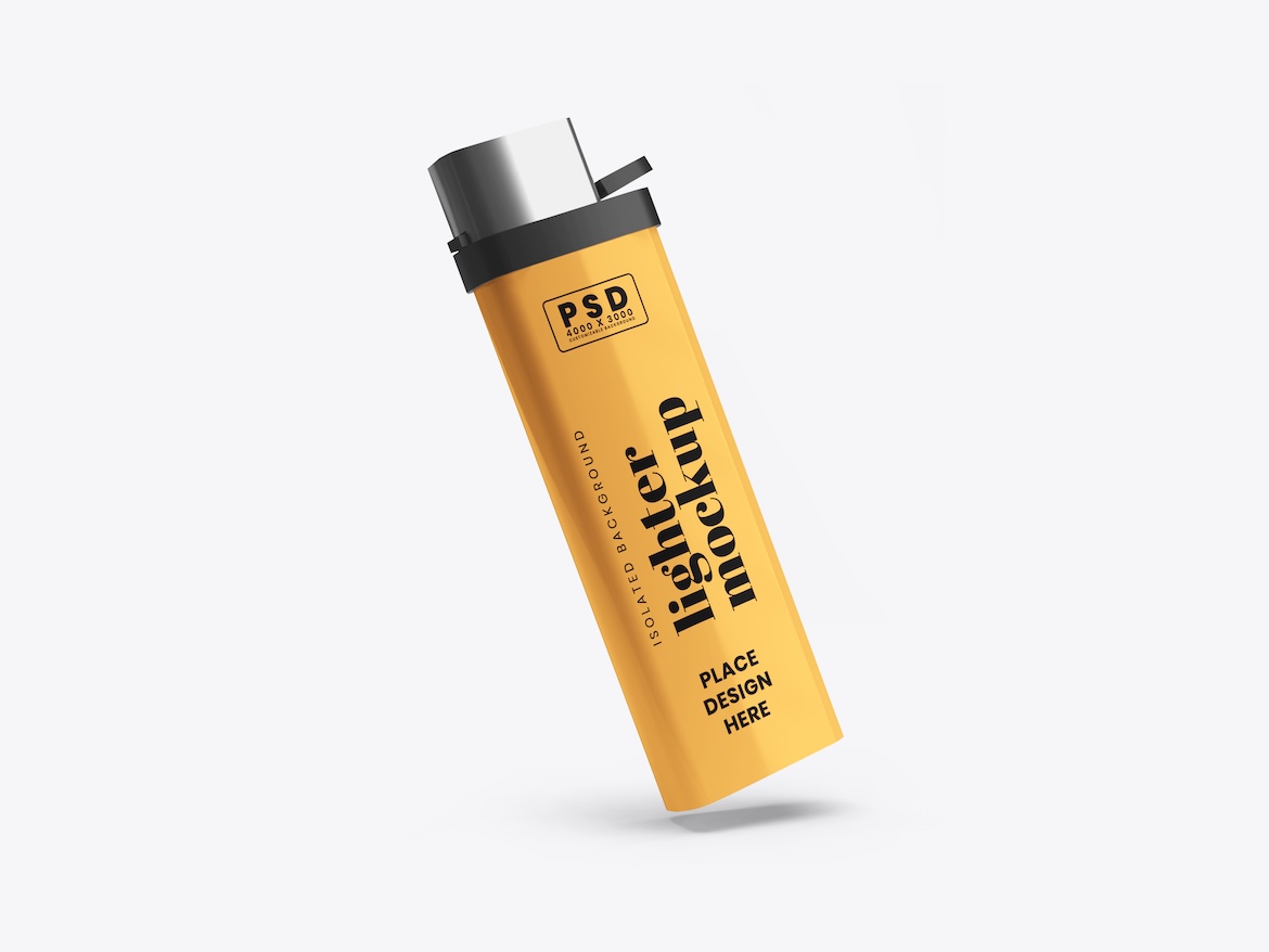 Showcase your branding with a bold and compact presentation using the Lighter Mockup. This high-resolution Photoshop mockup is perfect for displaying logo designs, promotional artwork, or brand identities on a lighter product with a realistic and professional look.